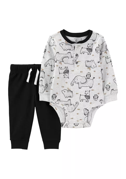 Crafted in soft cotton jersey with two in one set, this bodysuit pants outfit from Carter’s® is perfect for baby.