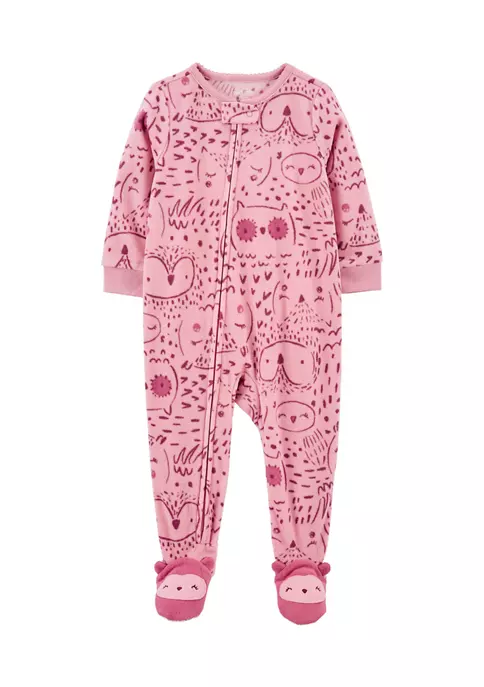 Crafted in snuggly fleece, this one-piece takes her from playtime to bedtime in no time! The zip-up design makes for quick changes and easy dressing. Chemically treated? No way! Carter’sยฎ polyester is flame resistant… Phew!