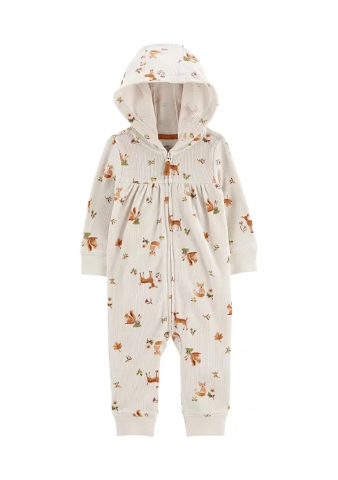 Crafted in cozy thermal with a hooded design, this Carter’sยฎ zip-up jumpsuit gets baby ready in no time.