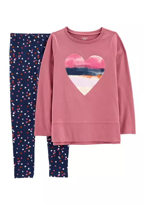 She’ll look precious in this Carter’sยฎ leggings set. Crafted in soft cotton jersey with a cute heart print, this top sits pretty over a pair of easy-on stretch leggings.