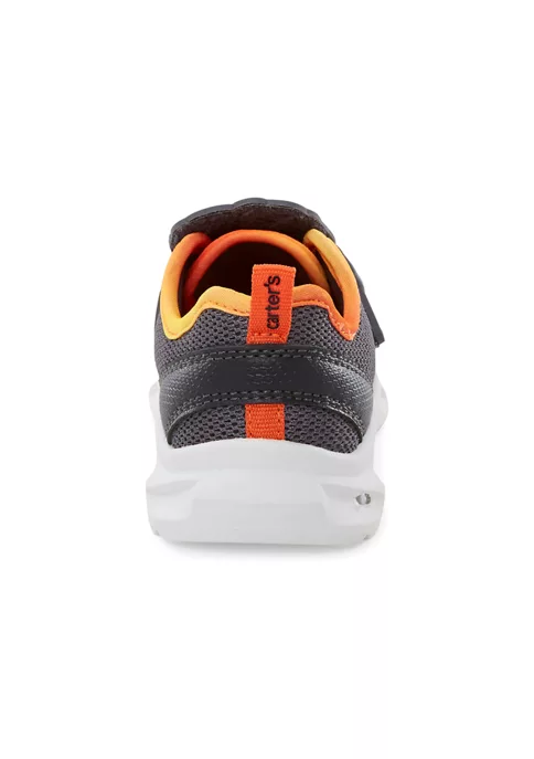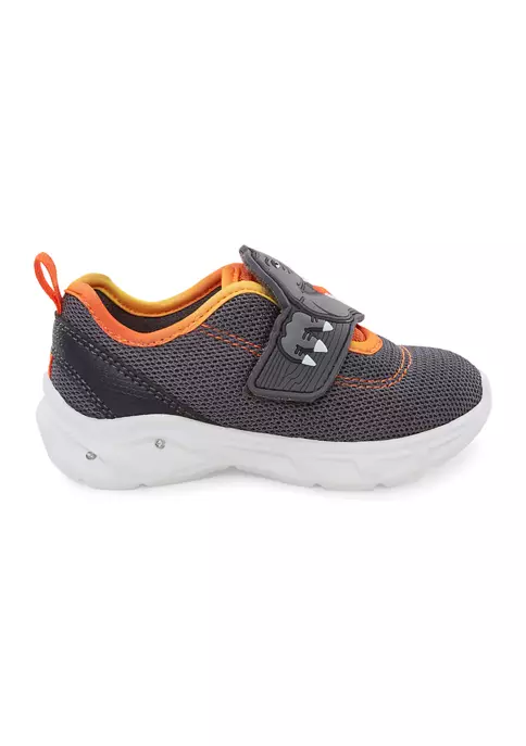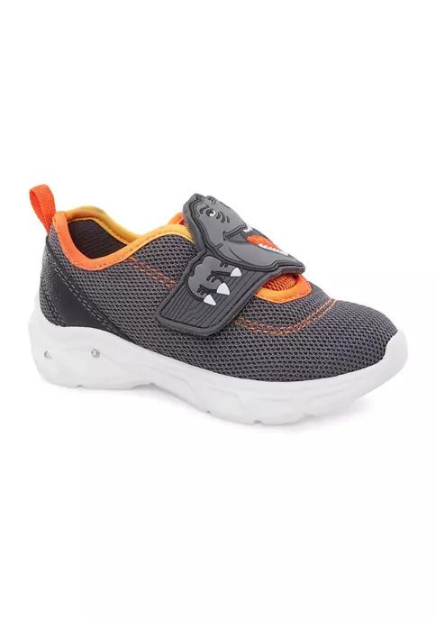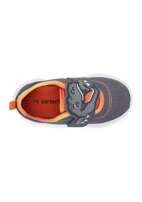 On the chase for daring details? These kicks can chomp the chomp. These Carter’sยฎ light-up Hug2 sneakers for boys feature a fierce T-Rex strap across the hook-and-loop closure, with an illuminating outsole that makes every step scary cool. Heโll love the lightweight mesh upper and sweet color contrast details too.