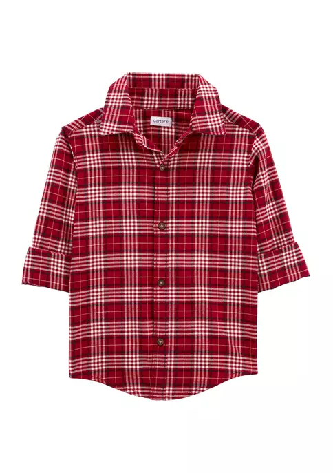 This festive fall-inspired plaid shirt from Carter’sĀ® is the perfect, sweet cool weather shirt for your little one.