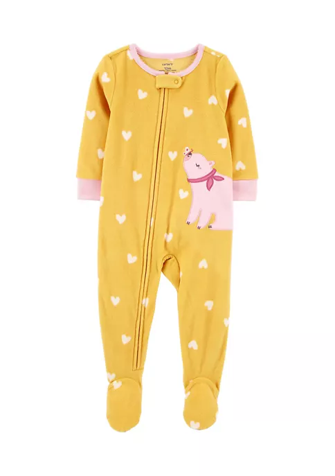 Crafted in snuggly fleece, this 1-piece takes her from playtime to bedtime in no time! The zip-up design makes for quick changes and easy dressing. Chemically treated? No way! Carter’sĀ® polyester is flame resistant… Phew!