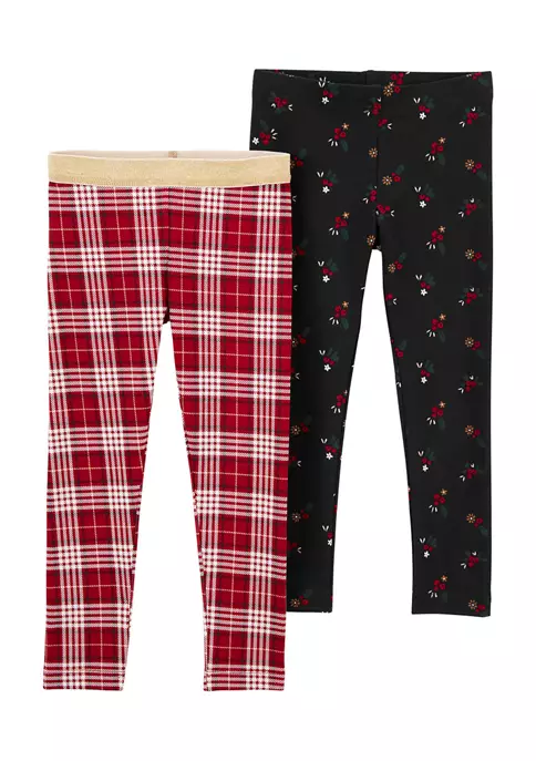Keep your little one cheery and bright this holiday season with this pack of plaid leggings and Santa hat leggings.