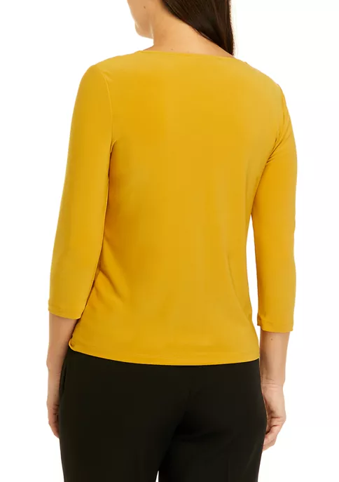 Accented with a flattering criss-cross neck detail, this top from Kasper adds a feminine flair to your wardrobe.