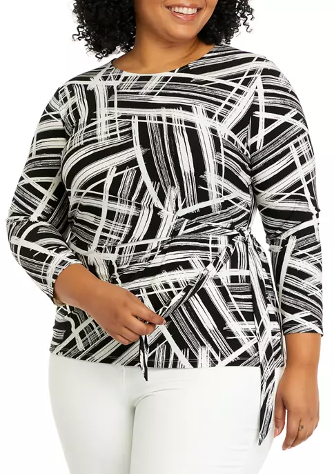 Detailed with a flattering side knot to define your waist, this top from Kasper is covered in black and white stripes for a chic finish.