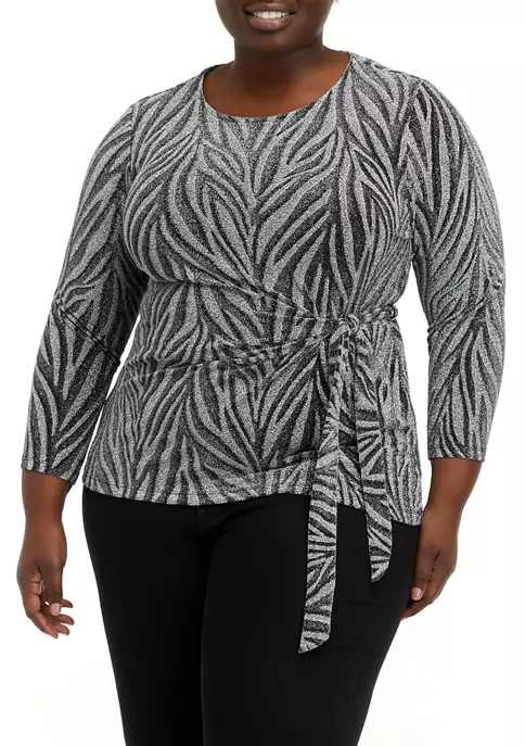 Shiny stripes make this knit top from Kasper pop with pizzazz.