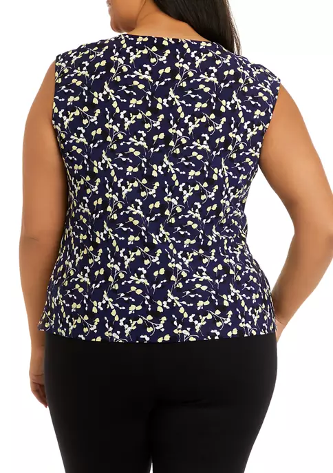 Detailed with a trendy twisted neckline, this pretty printed top from Kasper is perfect for the office.
