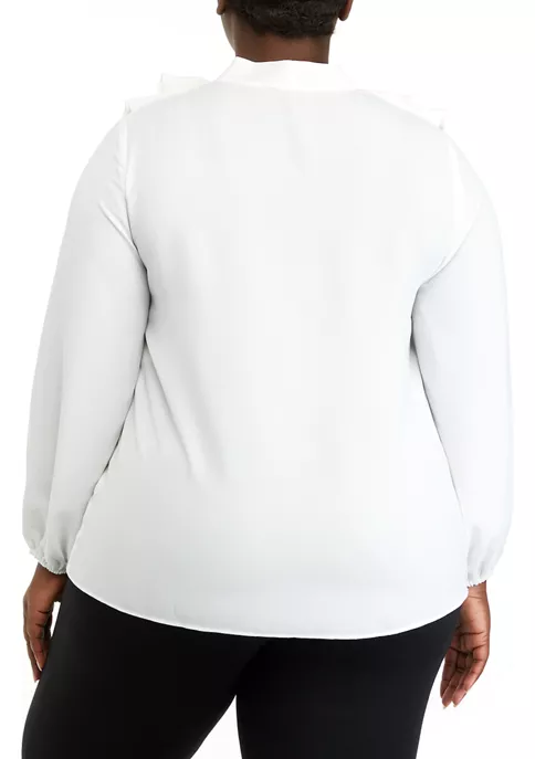 Feminine ruffle detailing and a flattering V-neckline define this chiffon blouse from Kasper.