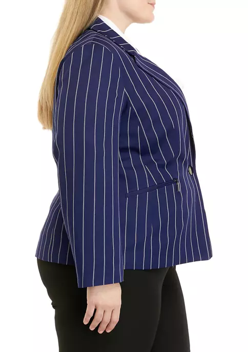 Polish up your workday wardrobe with this one-button jacket from Kasper boasting preppy pinstripes.