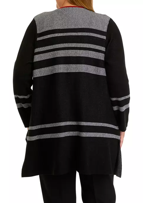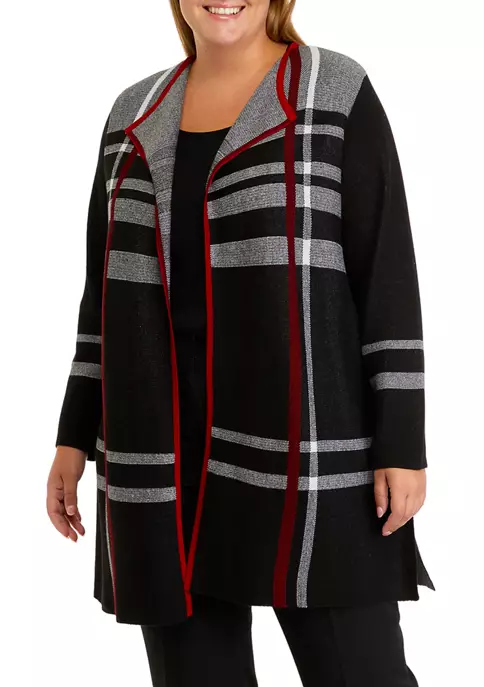 Perfect for layering, this cozy cardigan from Kasper features a preppy plaid print.