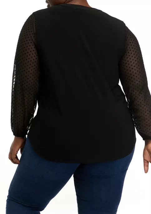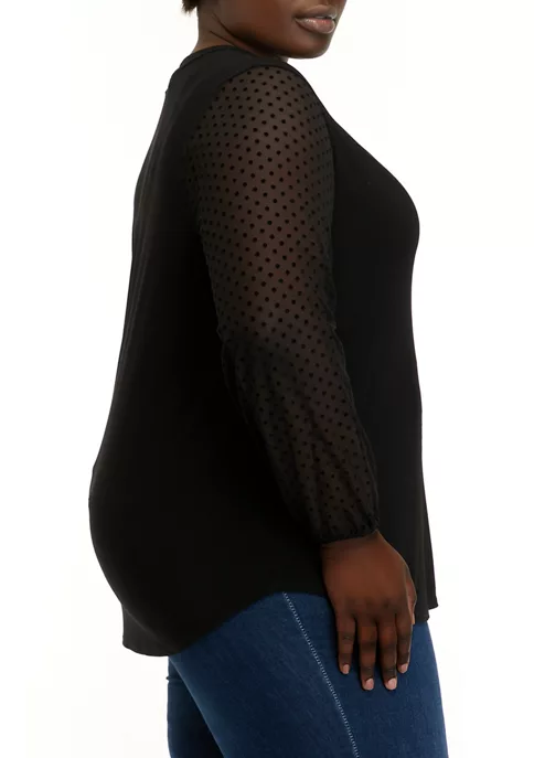 Sheer sleeves add a chic touch to this trend-savvy top from Kasper.