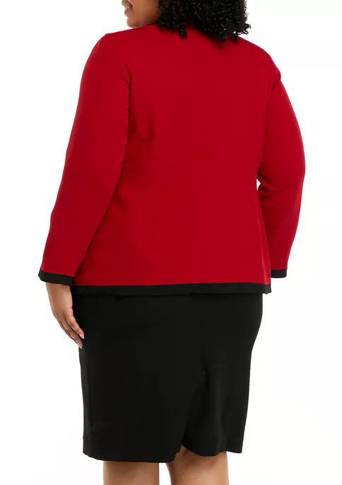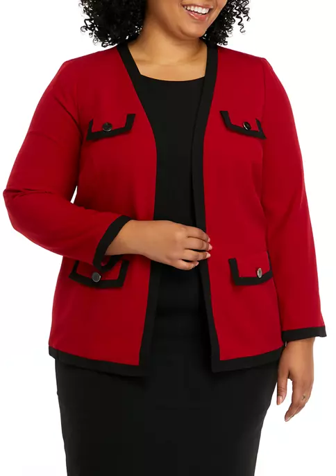 Accented with contrast pockets, this jacket from Kasper creates a polished look when layered over a sleek black dress.
