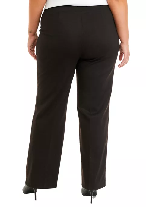 Polish up your workday wardrobe with these chic trouser pants from Kasper, complete with a wide leg and elastic waistband for maximum comfort.
