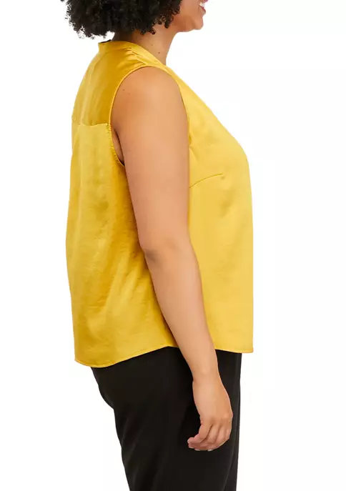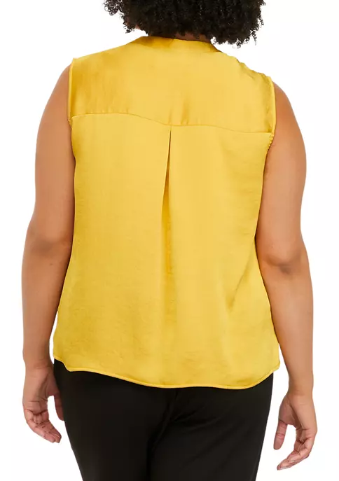 A split neckline with cinched accents enrich this sleeveless top from Kasper with office-ready allure.