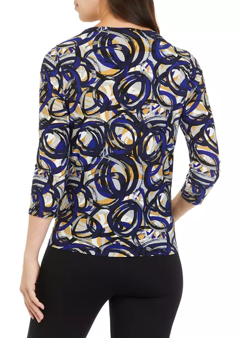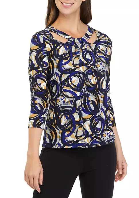 A captivating circle print and trendy twist neck elevate this top from Kasper.