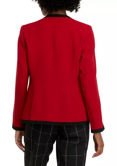 Channel a sophisticated workwear look in this Kasper open-front jacket. The bright candy apple red shade will put all attention on you.