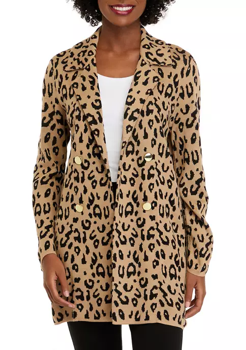 Enhanced with gold buttons, this cardigan jacket from Kasper features a notch collar that gives it the look of a blazer with the comfort of a sweater.