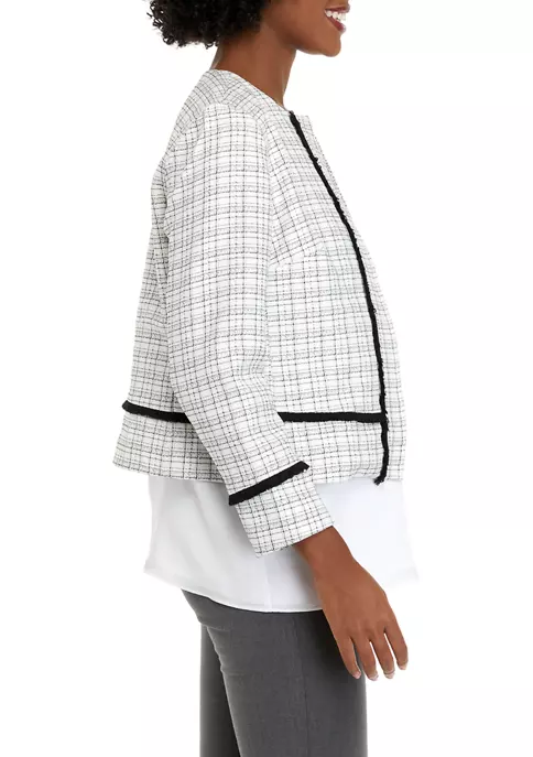 Update your wardrobe with a tweed jacket. This staple piece from Kasper looks especially polished with a button-down underneath.