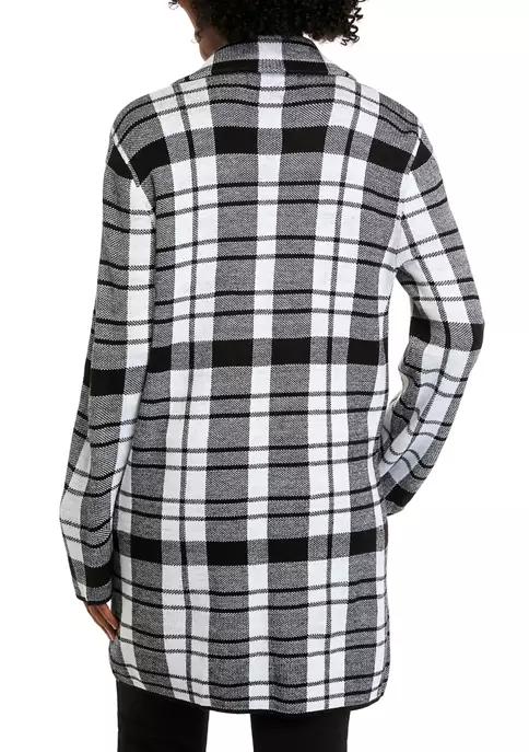 Decked out in plaid, this preppy cardigan jacket from Kasper is enhanced with gold buttons and a notch collar that gives it the look of a blazer with the comfort of a sweater.