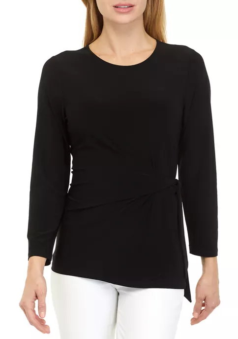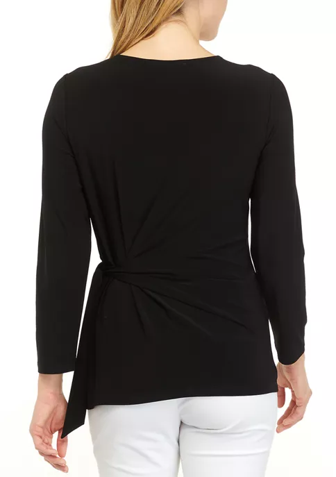 A figure-flattering tie front detail enhances this top from Kasper.