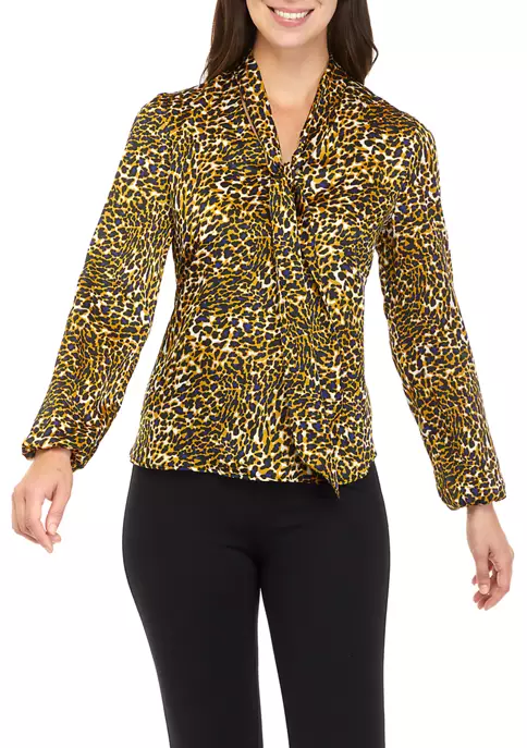 A trendy animal print and tie neck detail elevate this blouse from Kasper. Pair it with sleek black pants and sky-high heels to create a polished look for a night out.