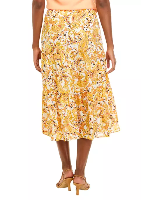 Trendy tiers and a lightweight woven fabrication make this paisley-printed skirt from Kasper a lovely pick to traipse and twirl in.