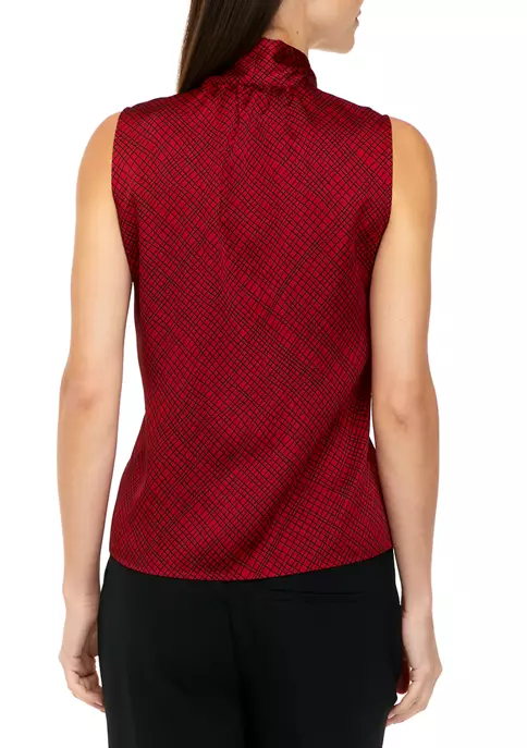 Silky satin adds a luxurious feel to this sleeveless blouse from Kasper enhanced with a feminine bow neck.