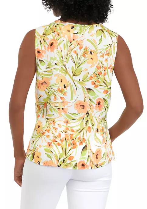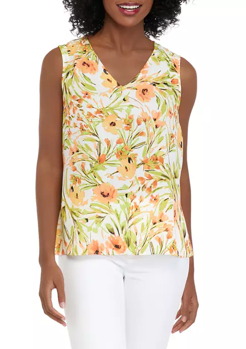 Covered in dimensional florals, this V-neck top from Kasper will look stylish alone or paired with a light layer.