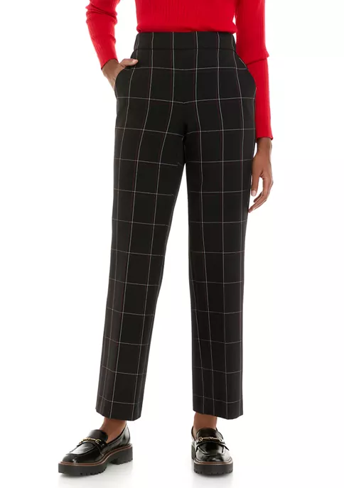 A classic windowpane plaid updates these wide-leg, trouser-style pants from Kasper.