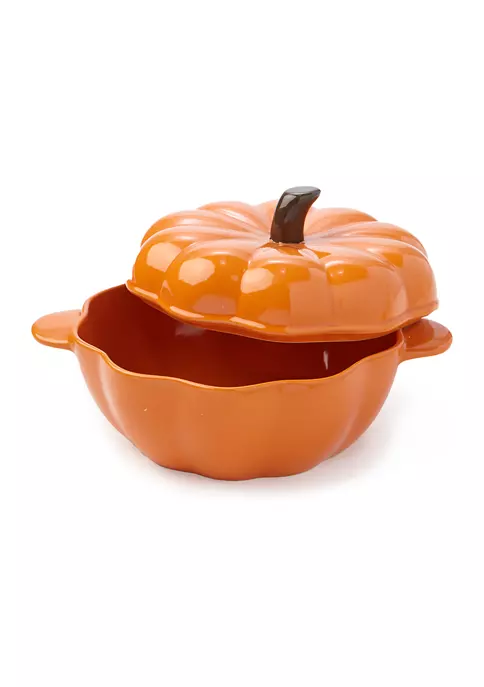 Complete with a lid, this casserole crock from Modern. Southern. Home.™ is crafted out of stoneware and shaped to look like a pumpkin.