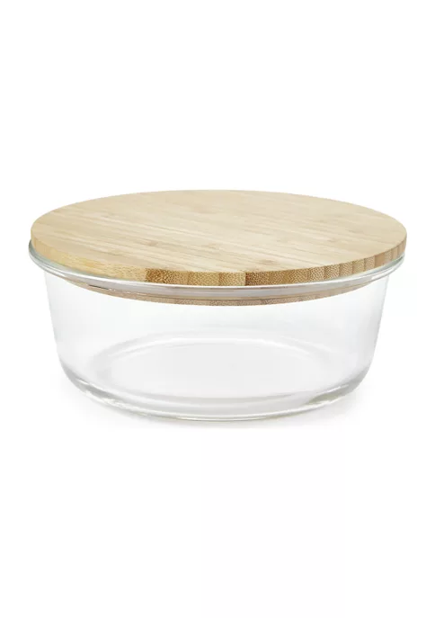 This sophisticated glass bowl from Modern. Southern. Home.™ is complete with a bamboo lid for a pulled-together organization.