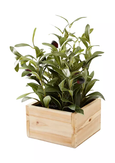 Structured in a wooden box, this sitabout is full of faux olive vines and will instantly upgrade any room.